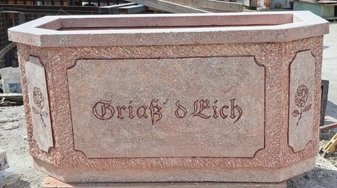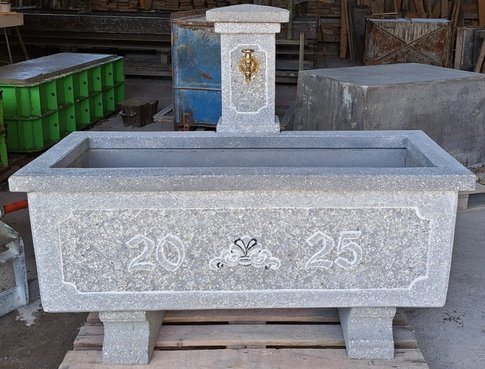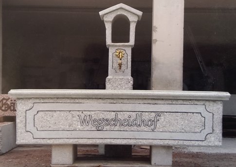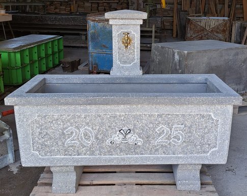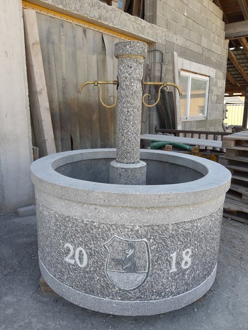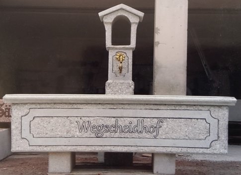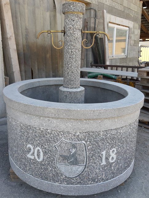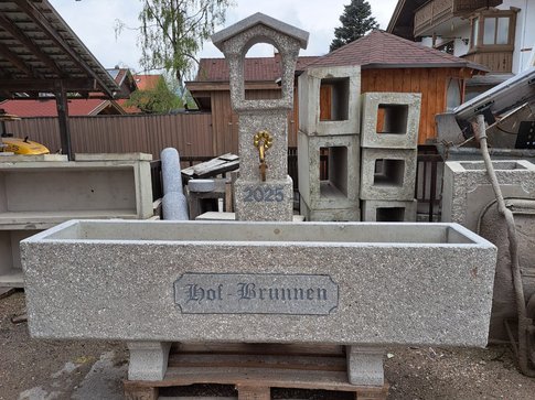 Alle unsere Brunnen und Tröge sind baustahlarmiert und aus hochwertigem Material hergestellt. Die schöne Steinmetzbearbeitung macht unsere Garten-, Friedhof- und Dorfbrunnen so beliebt! Außerdem sind sie durch Einfärbung kaum vom Naturstein zu unterscheiden (außer vom geringeren Preis). Selbstverständlich werden auch Brunnentröge und Säulen nach Ihren Entwürfen gefertigt.